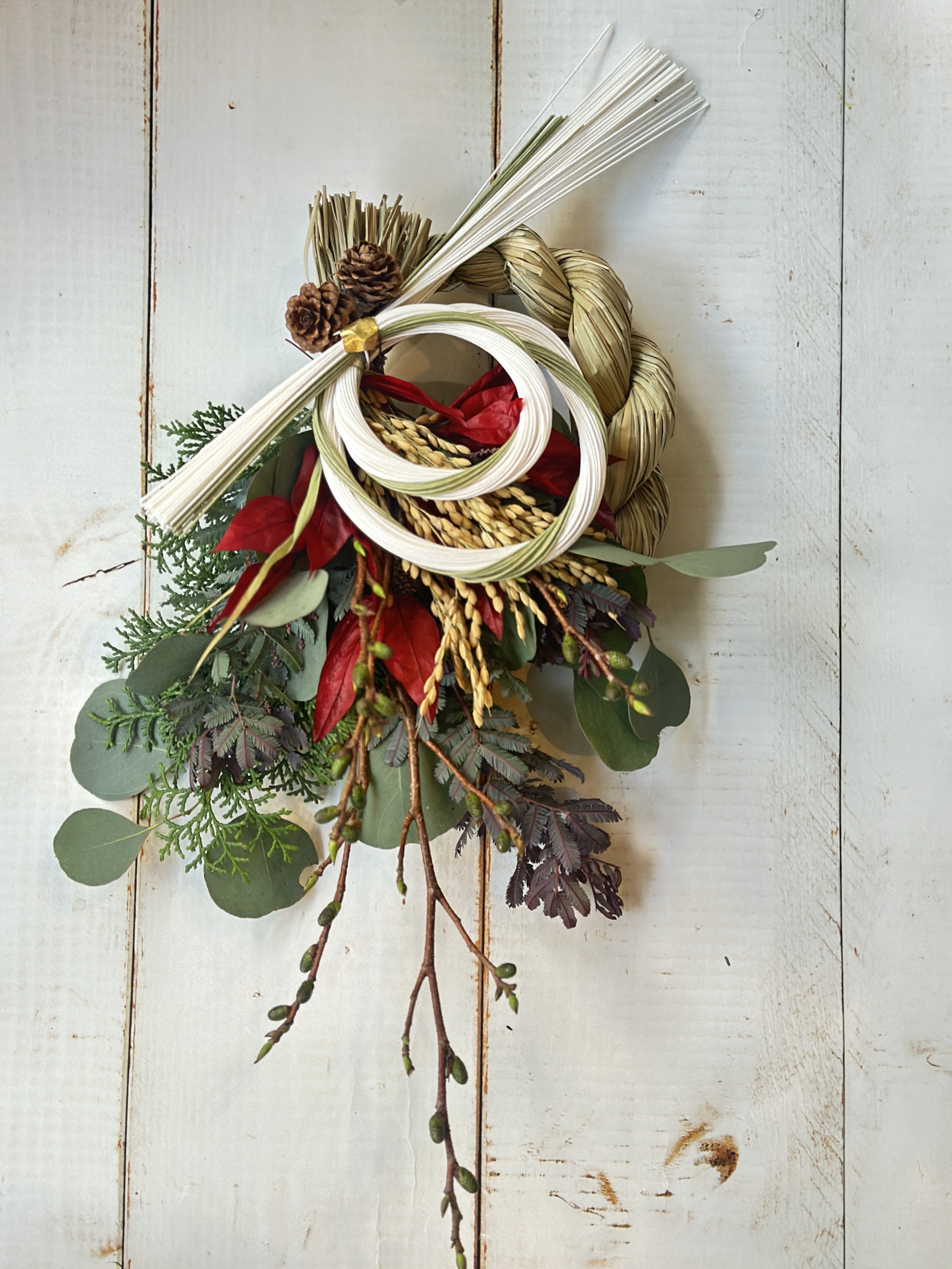 花材を付ける場所や付け方で全然違った印象のお飾りができます!