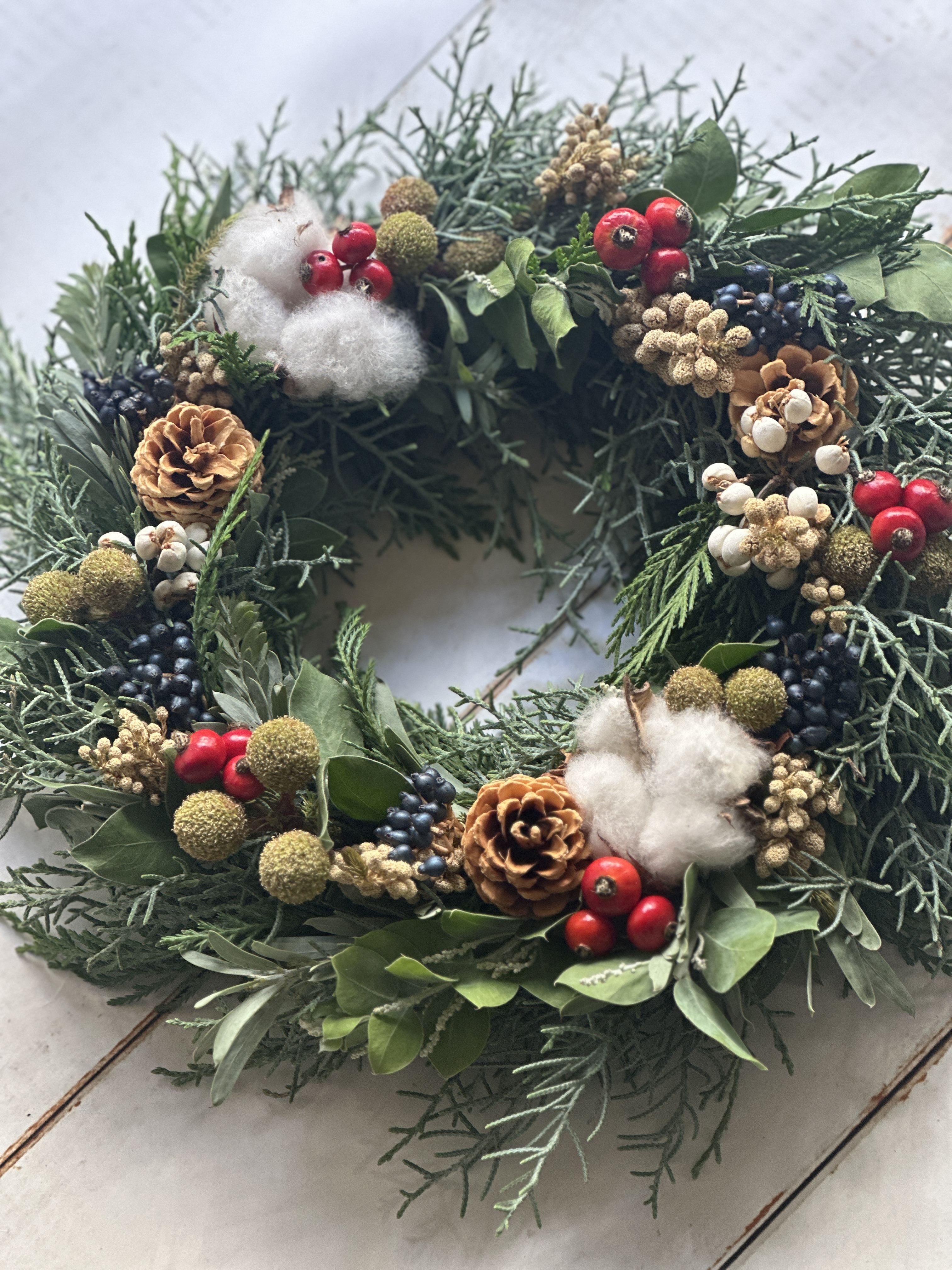 11月のマンスリーレッスンはクリスマスリース作りです 今年は良い香りの針葉樹を使った木の実とコットンのリースです 皆様のご参加お待ちしてます♪ サイズと料金は以下の通りです 20センチ 4,800円 25センチ 5,800円 30センチ 6,800円 料金は材料費、消費税込みとなります。 お申込みの際は必ずサイズの希望を連絡事項の欄にお願い致します。
