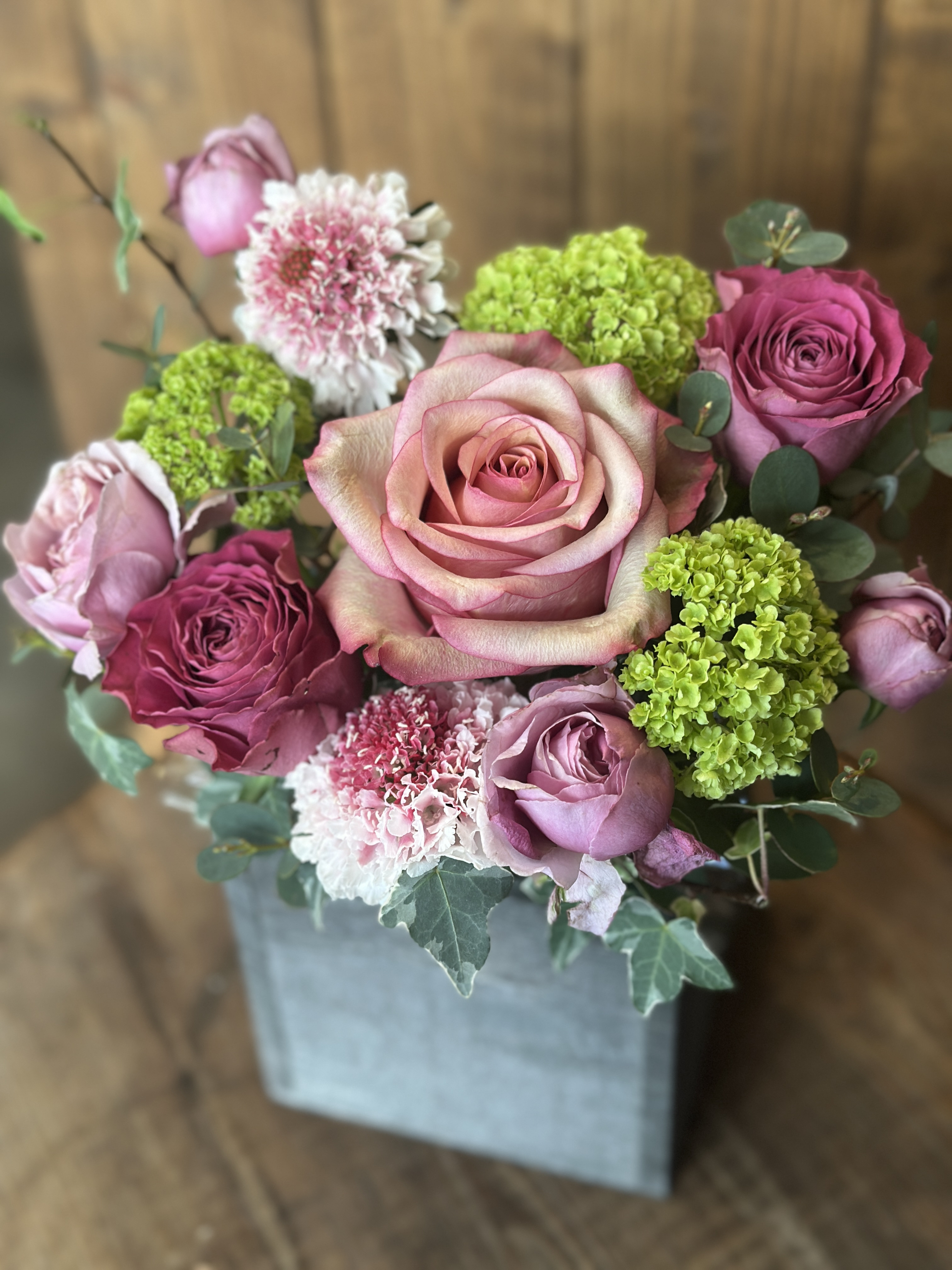 4月のマンスリーレッスンはバラを使ったアレンジメントです。 ナチュラルな木製のBOXを使ってアレンジをして頂きます。 バラの色や品種、その他の花はその時の仕入れによって変更となりますのでご了承下さい。
